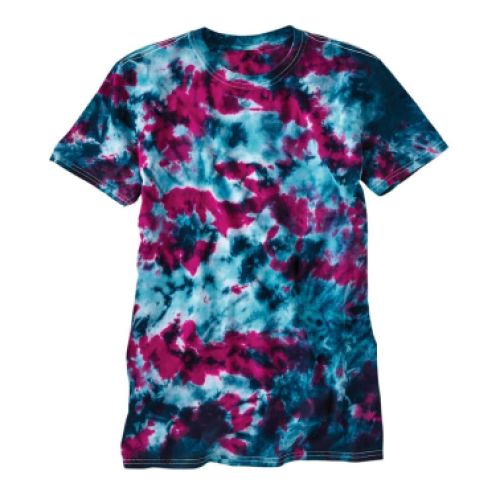 The LaMer over-dyed crinkle tie dye t-shirt features a vibrant color pattern that evokes feelings of the sea and will be sure to attract attention. Made from 100% ring spun cotton for an extra soft feel, this shirt has short sleeves and a crew neck for a relaxed and comfortable fit. Screen print a design on the front or back for a truly unique look.